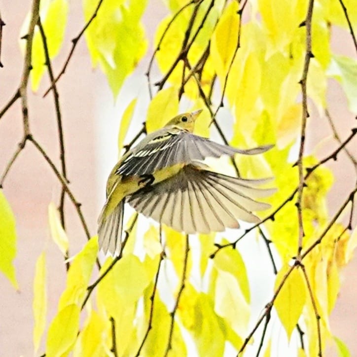 During peak migration. in the hours between dawn and mid morning, or late afternoon, it’s often possible to catch a glimpse of the migrants in the trees and shrubs in the park; blue could be a tiny Indigo Bunting, a Black-throated Blue Warbler or a Blue Jay (who is a year round native); a flash of orange could be a Baltimore Oriole; red could be a Scarlet Tanager, a Rose-breasted Grosbeak or even one of our year round Northern Cardinals who nest in the park; but yellow is almost always one of the abundant yellow-colored warblers.