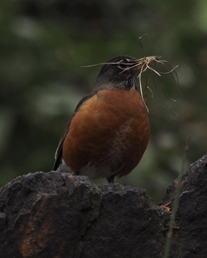 Robin with nesting material (photo by Jay Zemann)