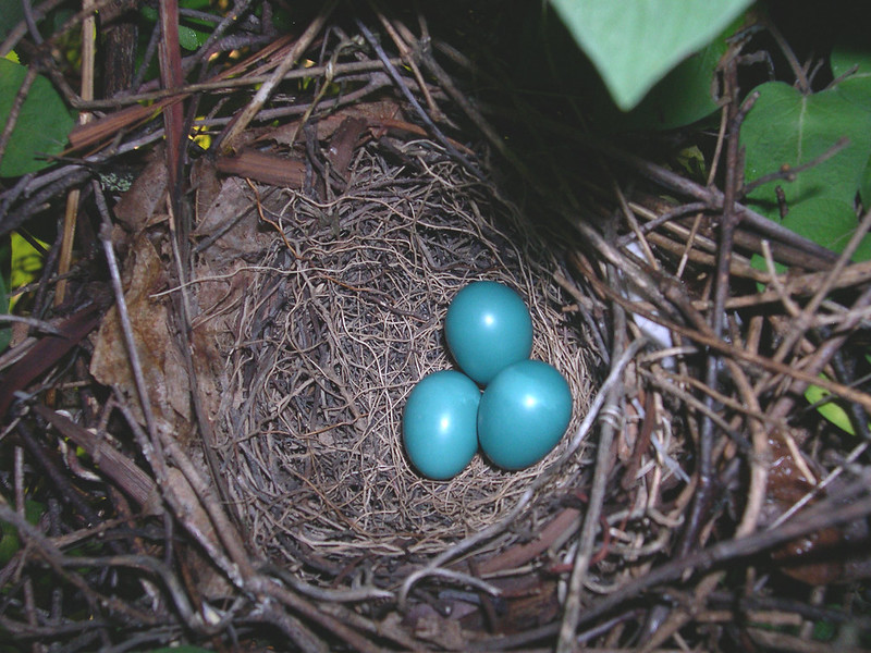 For the last couple of years, a Gray Catbird pair has nested in the shrubs along the boardwalk near the Mayor’s Mansion. The Gray Catbird is one of Robyn’s favorites because of its vibrant teal colored eggs. The only visible signs that they are nesting nearby is a glimpse of this slim gray bird with its signature black cap darting into the bushes, or sitting in a nearby tree singing.