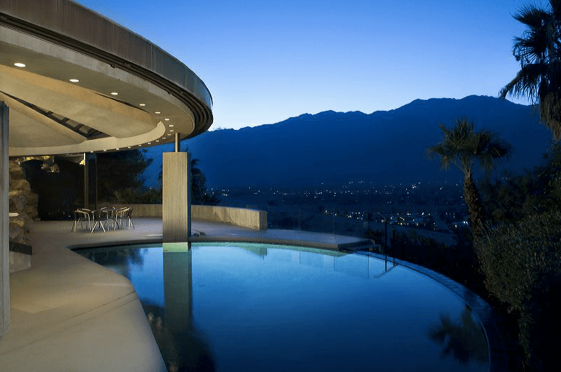 UPDATE: American fashion designer Jeremy Scott now lives in the Elrod House. He also owns the John Lautner designed Foster-Carling House in the Hollywood Hills.
